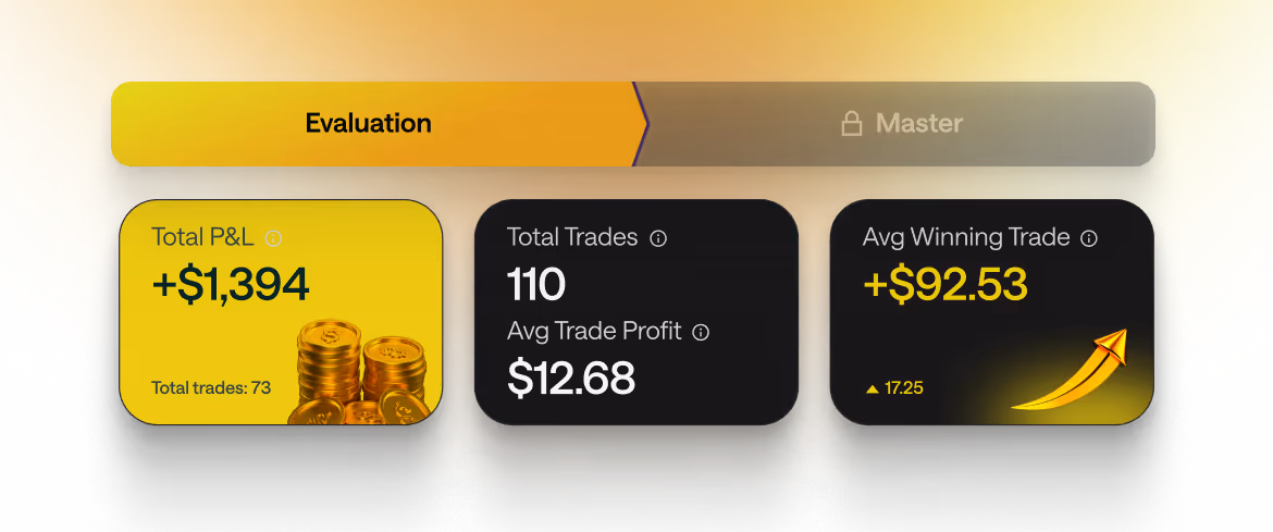 - Affordable Entry: Our evaluations start at very competitive rates, allowing you to start for as low as $50 ($3,000 Crypto Instant Master)