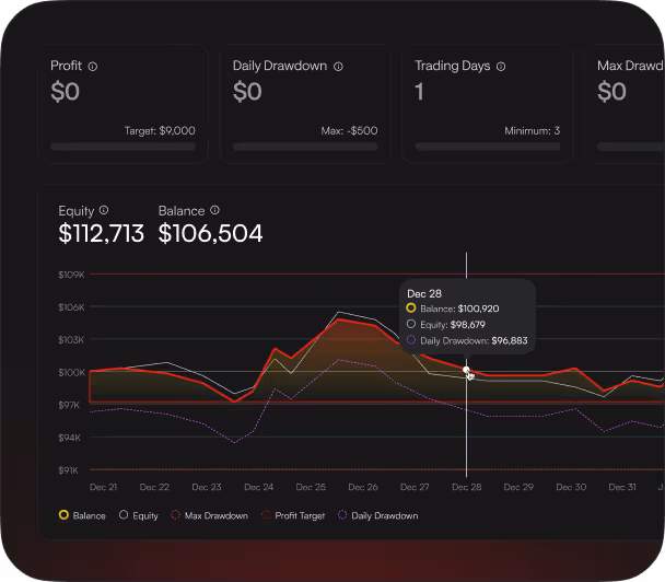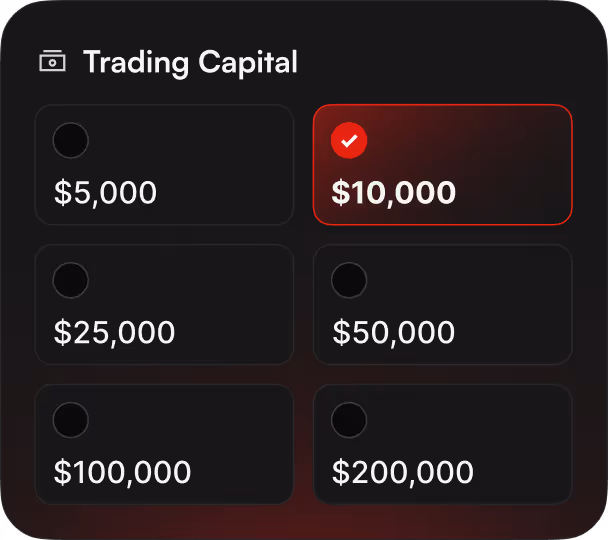 Můžete začít s výrazně nižším kapitálem, než vyžaduje tradiční účet u brokera. Místo riskování vlastních úspor zaplatíte pouze jednorázový poplatek za evaluaci, abyste získali přístup k našemu virtuálnímu kapitálu.