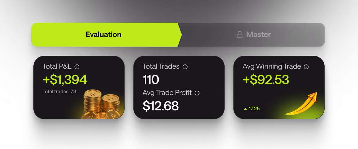 Traders that successfully complete our challenge are upgraded to a so-called “Master Account” in which they still keep trading on a demo account with virtual funds, yet earn real cash rewards based on their performance.