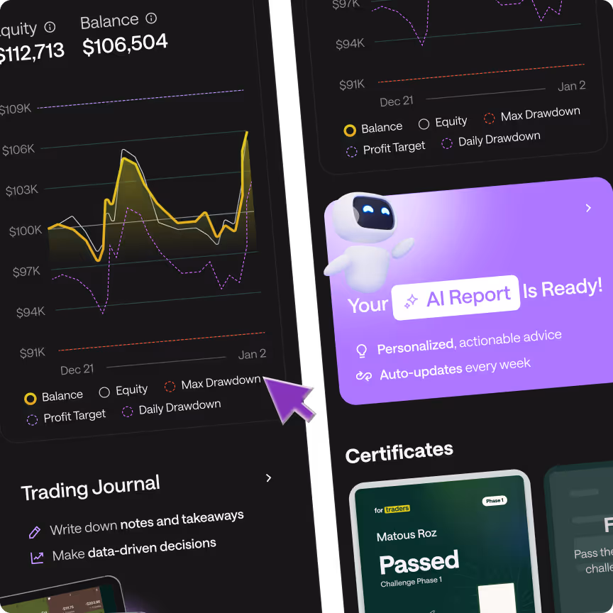 - AI-Powered Coaching: The only prop firm with a built-in AI Coach that analyzes your trading journals to help you pass.
